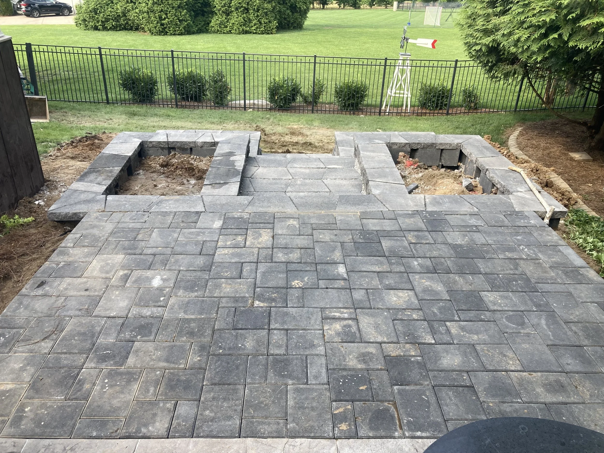 Custom patios, walkways, retaining walls, paver systems, outdoor living spaces, and structural hardscape features. Proper base preparation and drainage planning are standard, not upgrades.